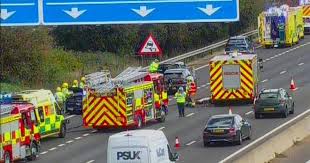 GB: A significant multi-vehicle collision, involving at least seven cars, has caused major disruption on the M27. The incident has resulted in the closure of three lanes, leading to severe traffic delays. Emergency services are on the scene responding to the crash and are treating a number of people for injuries. The full extent of the injuries is currently unconfirmed as authorities work to manage the situation and clear the carriageway.