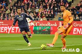 IN: Real Madrid is playing Girona in a crucial La Liga match. The game's major talking point so far is a disallowed goal for Real Madrid. The match is currently level after a Kylian Mbappé penalty, awarded for a clear foul on Vinicius Jr., canceled out an earlier goal. Madrid is seeking a reaction after recent struggles, while Girona is fighting to climb out of the relegation zone.